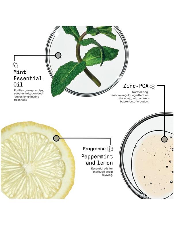 - Complexe hautement rééquilibrant pour cheveux gras qui agit en synergie pour réguler efficacement l'équilibre sébum