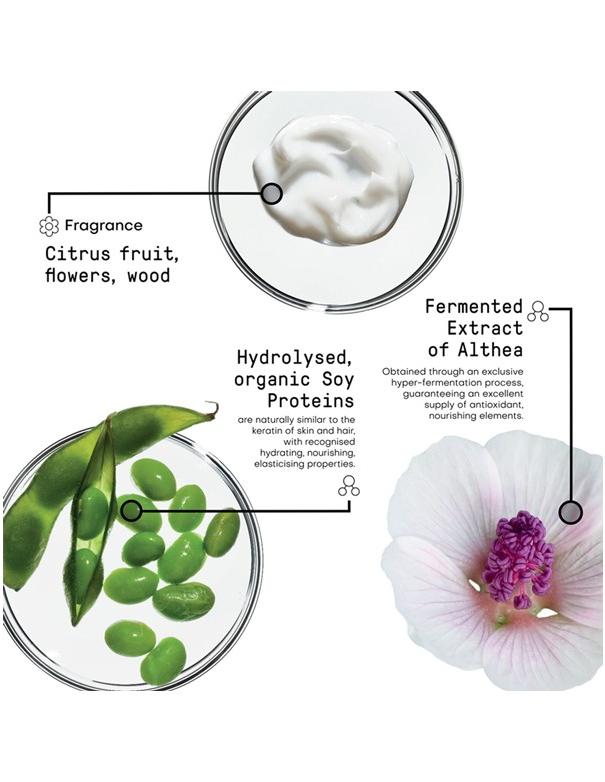- Fermented Extract of Althea: Natural Amino Acids strengthen damaged, weak hair and treat dry, brittle hair by repairing and providing healthy moisture levels within the hair / Soothes an easily irritated scalp providing a protective film on the hair / Detangles, hydrates, and protects hair