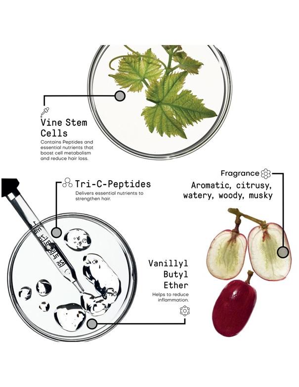 - Tri-C-PeptidesTM: Increasing blood circulation to the hair follicles to deliver essential nutrients to the hair follicles / Strengthens hair by promoting collagen and elastin production to prevent hair breakage and split ends / Protects the hair and scalp from environmental damage, such as pollution and UV rays