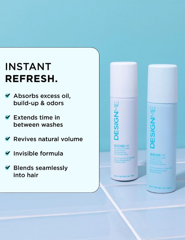 Give the gift of endless good hair days with our lavish little QUICKIE.ME dry shampoo ornament for light hair tones! An invisible dry shampoo that eliminates oil, sweat, and odors to instantly revive and refresh hair. Perfect for light hair tones—blonde, platinum, grey, or white—it blends seamlessly with no residue or white cast. Enriched with rice starch, QUICKIE.ME Dry Shampoo extends your style and restores natural volume, delivering a fresh, full-bodied finish anytime you need it.