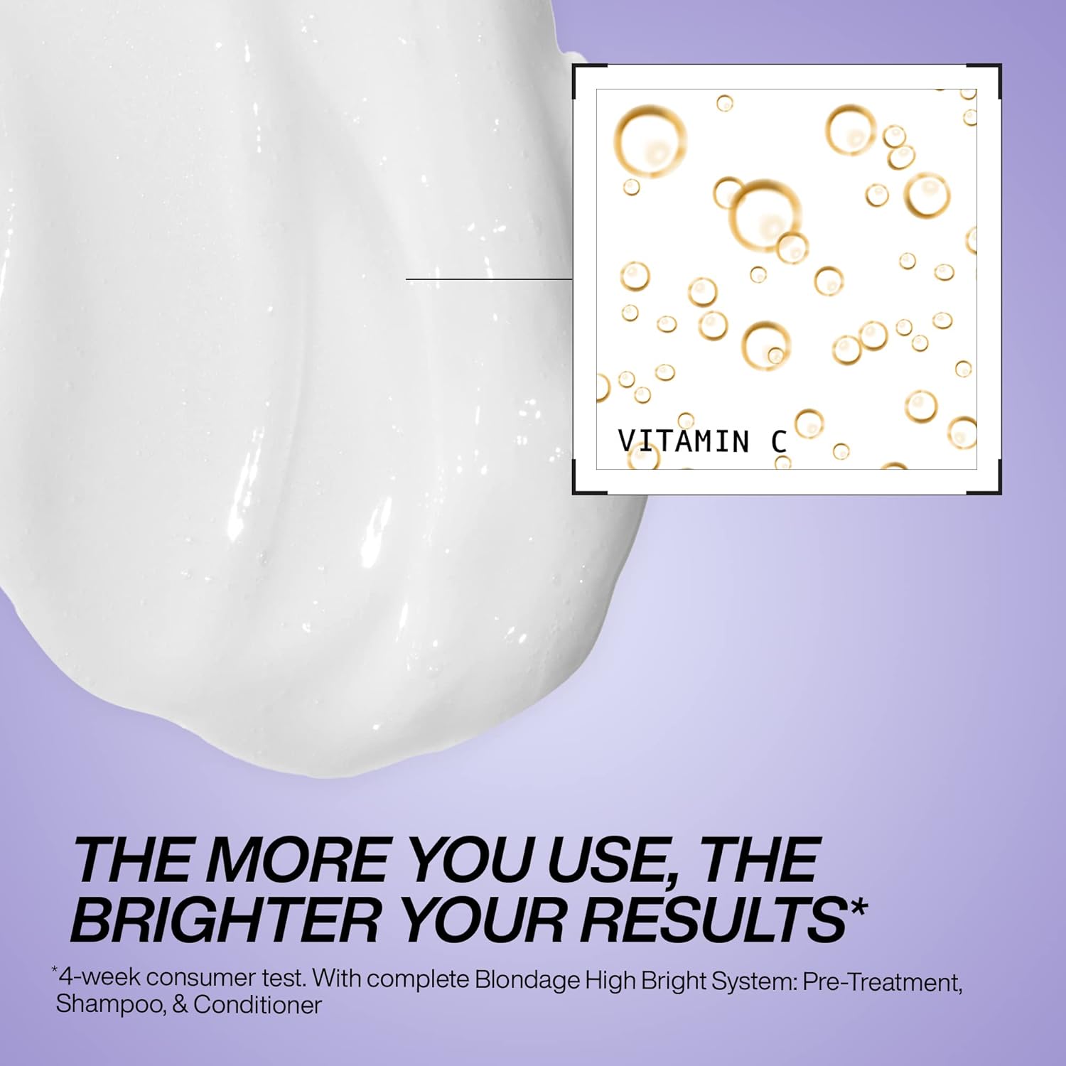 Use as a complete system with Blondage High Bright Pre-Shampoo Treatment and Conditioner. Apply shampoo to wet hair after pre-treatment, lather, and rinse. Follow with Blondage High Bright conditioner. Use entire Blondage High Bright system for an instantly brighter blonde in one use.