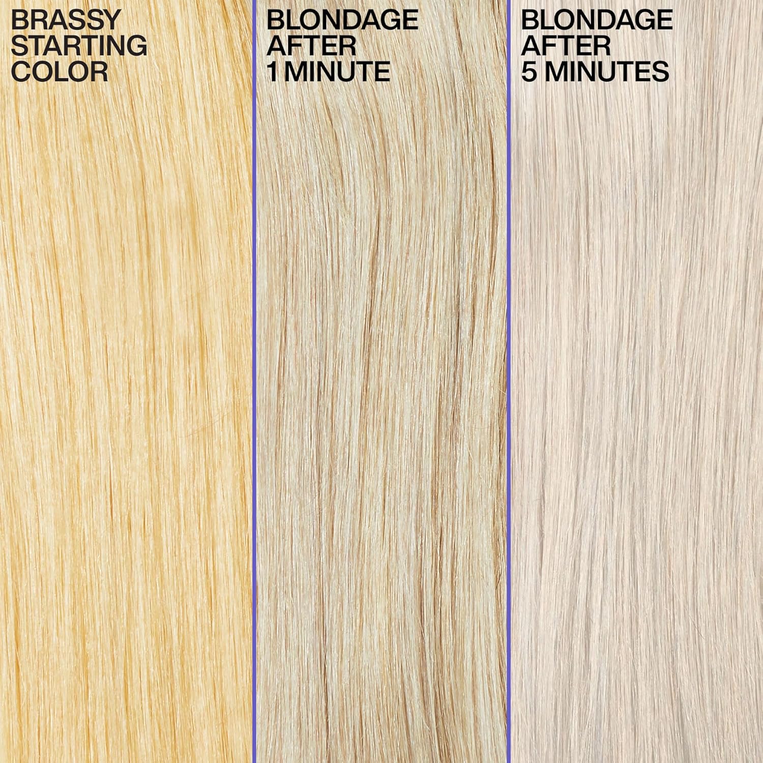 Redken Color Extend Blondage is a color-depositing purple shampoo for blonde and highlighted hair. This shampoo features key ingredients salicylic acid to strengthen and repair blonde hair from the core and pure violet (purple) pigments to remove unwanted brassiness and leave blonde hair color cool and bright. This formula gently cleanses and adds softness.